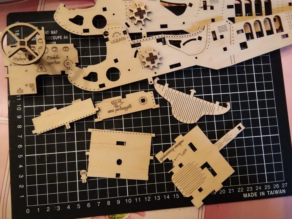 et voici le 3 em modèle en bois de chez UGEARS , compliqué, mais mes conseils sont toujours les mêmes. J’aime bien ça petite cachette