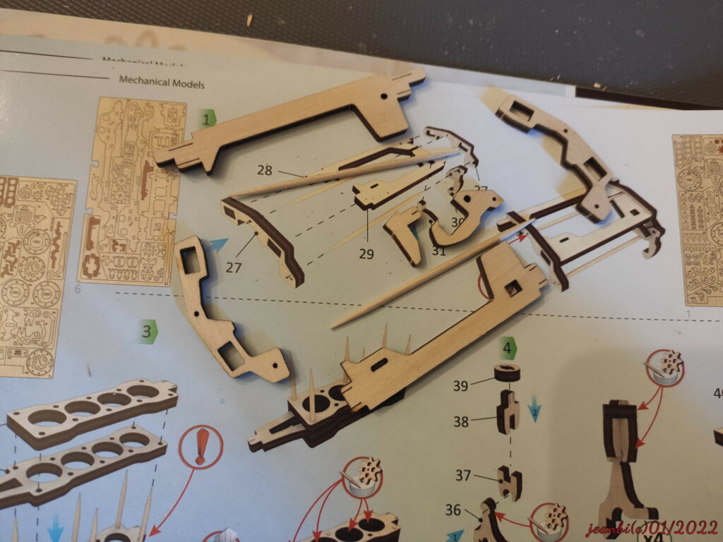 1: n’ayez pas peur de donner un petit coup de papier à poncer avant d’insérer les pièces, vous pouvez même passer un peu de bougie, cela evite de forcer et de risquer et de casser des pièces.