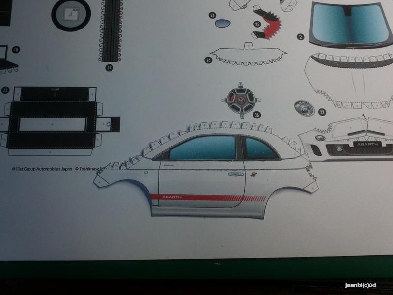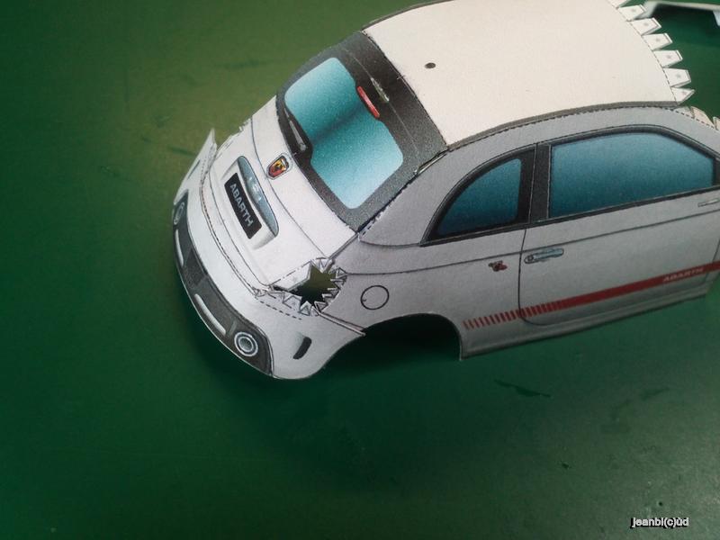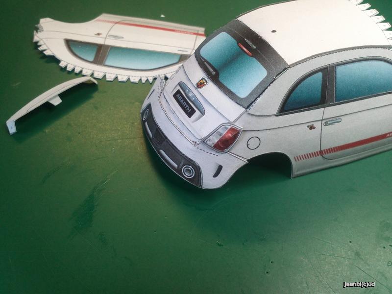 Ma dernière réalisation en papercraft,une Fiat 500 Abarth, je l’ai trouve au 1/24 em sur le site de après l’avoir monté , j’ai réduit le pdf au 1/43 em voici le résultat
